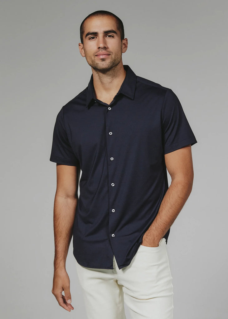 Light weight stretchy performace button up. Machine wash, wrinkle free. Modern slim fit. Textured solid.